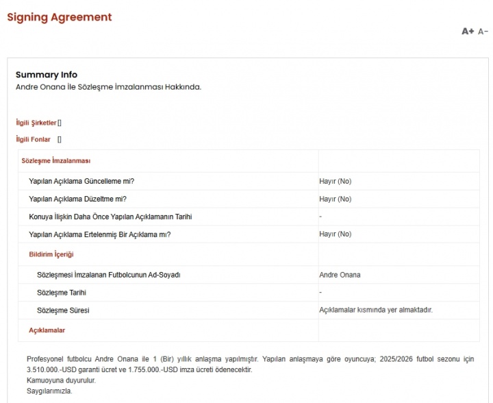 官方:奥纳纳租借土超的年薪351万美元,签字费175.5万美元 频道:西甲 日期:2026-01-13 06:14:26 浏览:38 09月12日讯 特拉布宗体育官方宣布,曼联门将奥纳纳租借加盟。据土耳其资本市场委员会(KAP)发布的重大事件披露显示,奥纳纳租借期限为一年,球员基础薪资351万美元,签字费175.5万美元。 上一篇:25分5板4助!清华大学后卫石奎连续两场当选全场最佳球员 下一篇:500网-从末节16分到11中0得0分!19岁天才陷状态断崖,折射成长困境? 相关文章 500网-国足公布39人集训名单 四大归化球员入选武磊缺席 500万彩票网-东契奇小腿拉伤归期未定 笑纳大礼太阳或直通西决 500网-“金杯车”生产商鑫源汽车发布新Logo,被指“撞脸小米” 500.com-雄鹿近11场对阵胜率超50%球队,仅取得2胜9负的战绩 500万彩票网-2022赛季F1总结④:周冠宇“最佳新秀” 维特尔告别 500万彩票网-亚运男足降格中国迎机会? 仅中韩两队派U24队伍 500.com-利拉德:恩比德值得MVP 但约基奇是联盟最好的球员 拜仁夏窗总结:瑕不掩瑜,拜仁冬窗还能大补